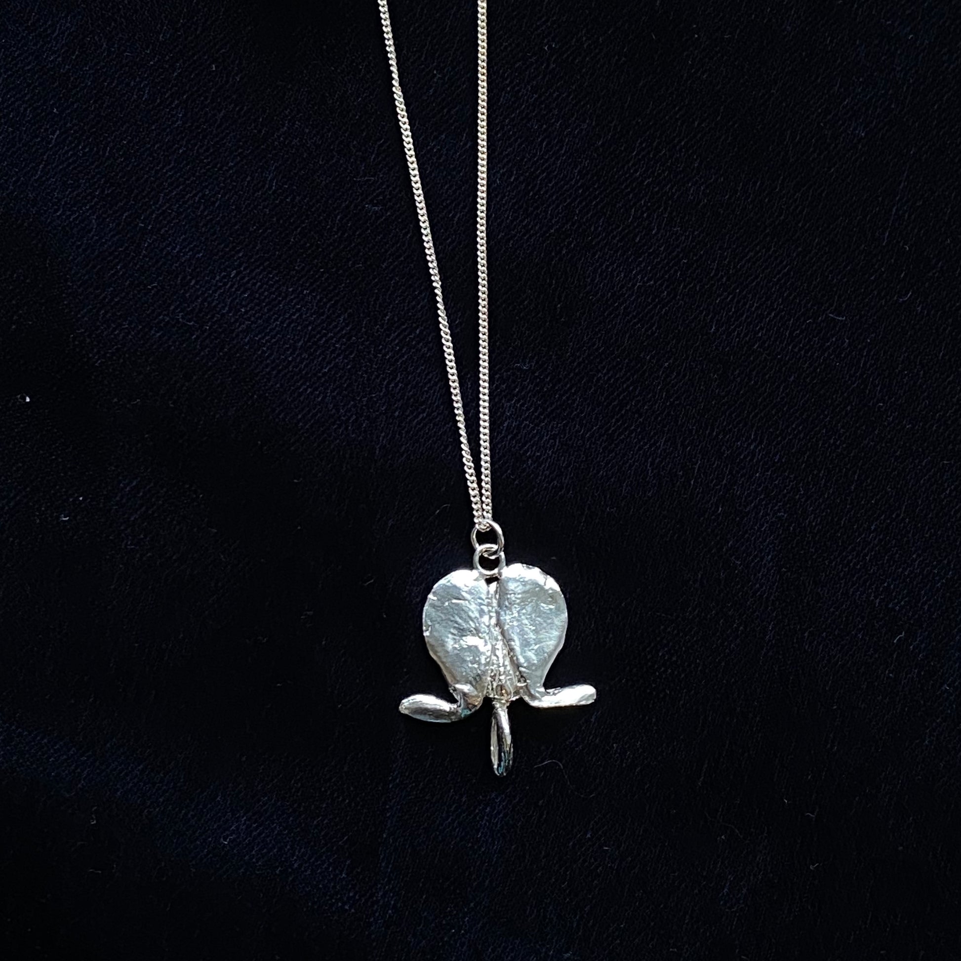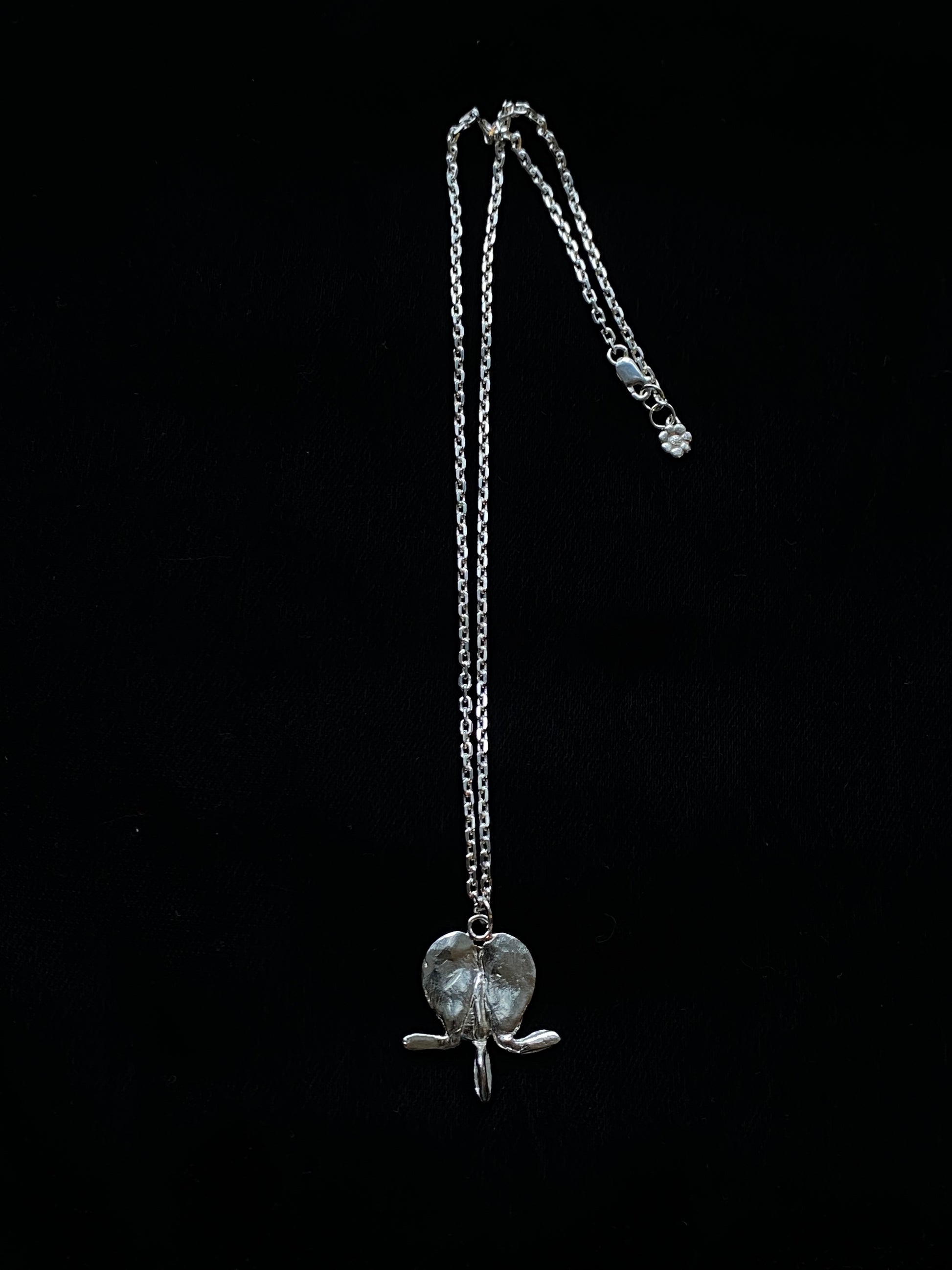 Comes on a simple curb chain or on a slightly thicker chain with little flower charm at the back.