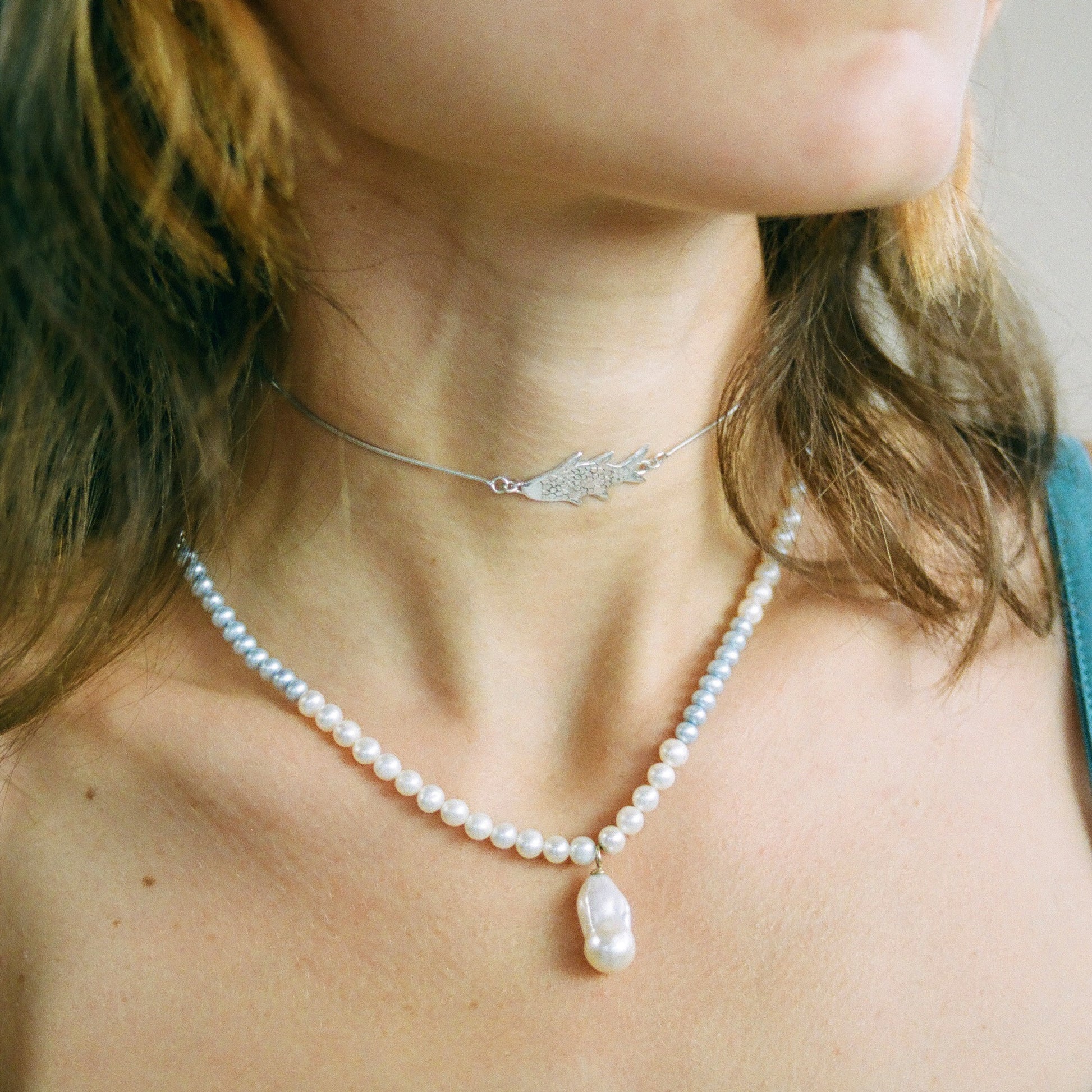 Enki choker necklace: designed after the Annunaki entity Enki, represented in the Sumerian civilization as a semi-man semi-fish. This important positive figure of the Sumerian culture is believed to be at the origin of the Human creation and a transmitter of knowledge from the distant star Nibiru.