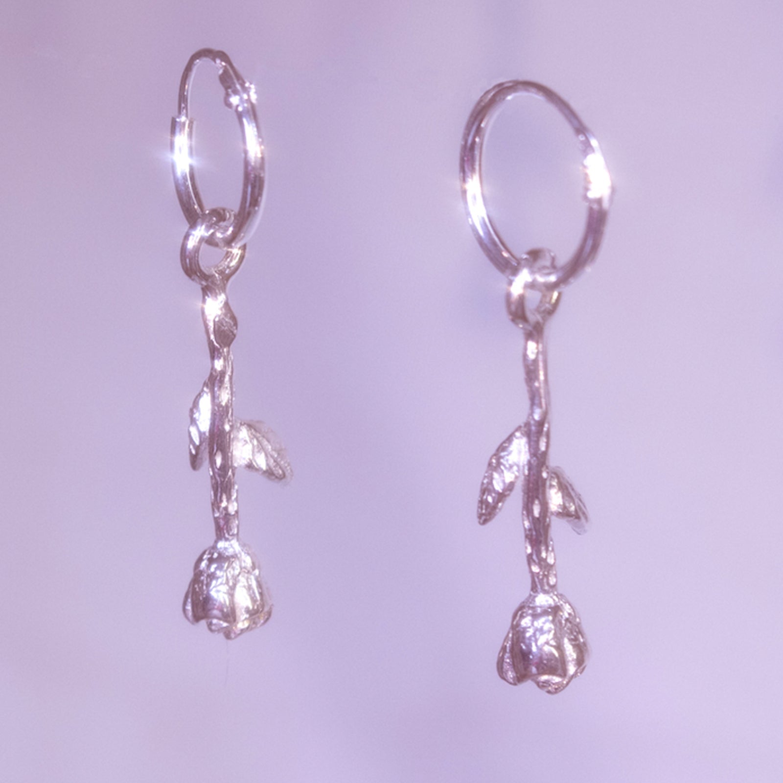 3cm rose charm on a 1cm diameter hoop. Weight: about 2gr each.